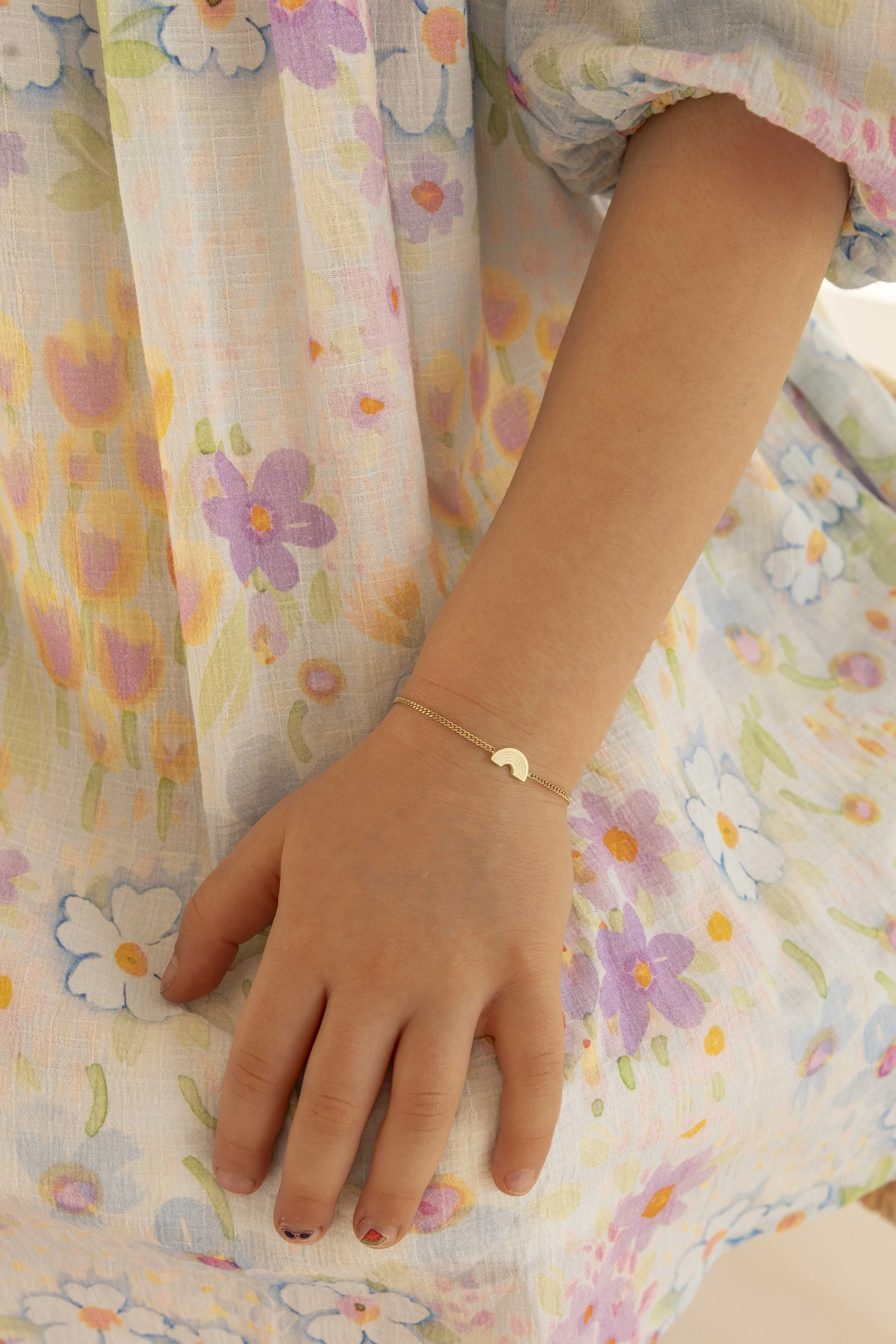 Een gouden armband, zacht en verfijnd, die zich bijna onmerkbaar rond je pols vleit.
