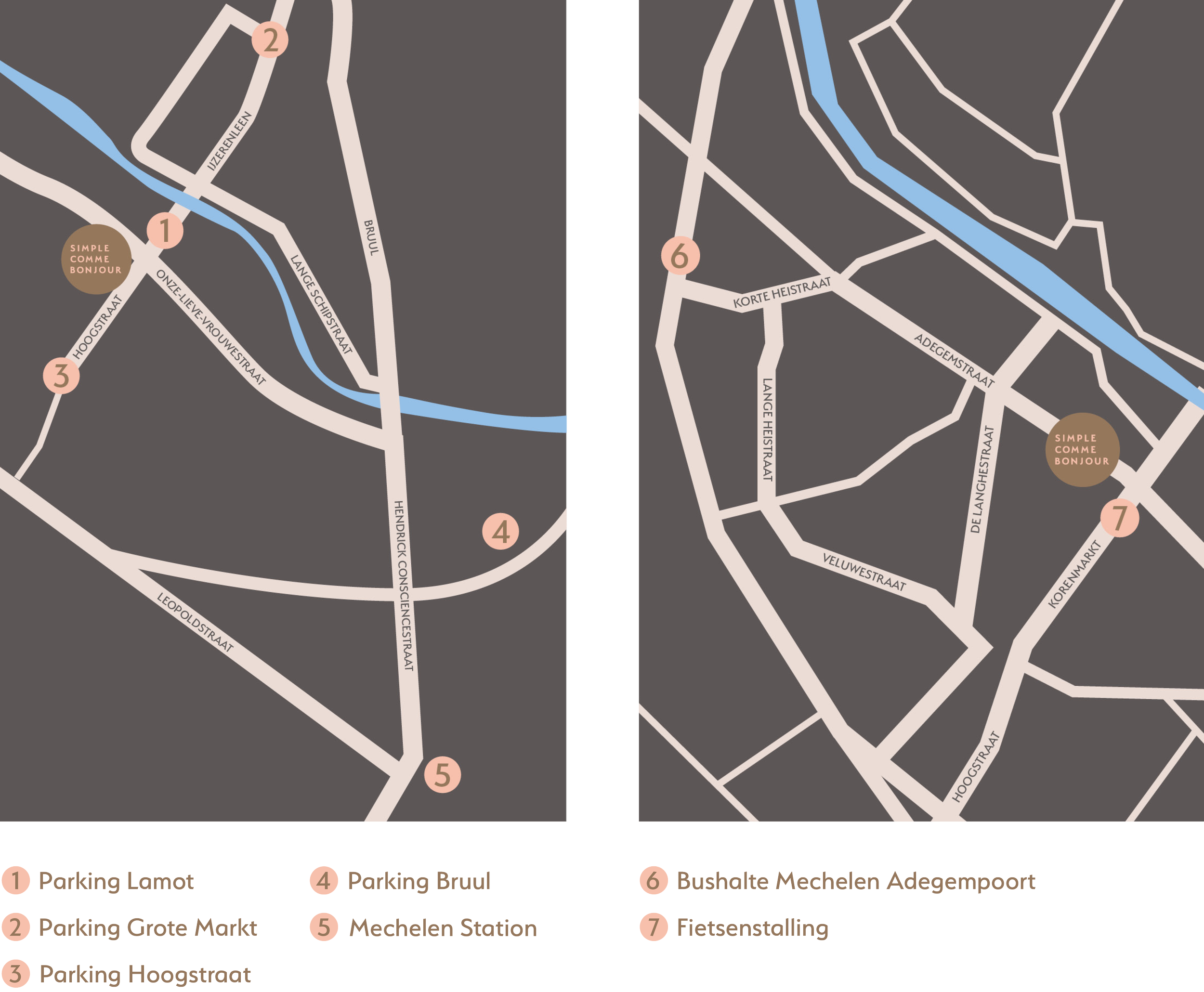 • Het station Mechelen is op 10 minuutjes wandelen van ons atelier.